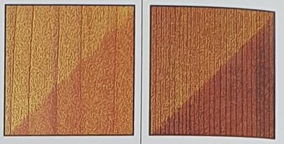 같은 종이나 같은 나무에서 얻은 것이라 해도 목재의 색은 서로 상당히 다를 수 있다. 빛에 노출된 목재는 대부분 어둡게 변하지만 어떤 목재는 오히려 더 밝아지거나 변하지 않기도 한다. 마감을 하게 되면 그 정도에 상관없이 색이 더 어두워진다. 작은 직사각형 샘플 사진은 마감했을 때와 하지 않았을 때의 색 차이를 보여준다.