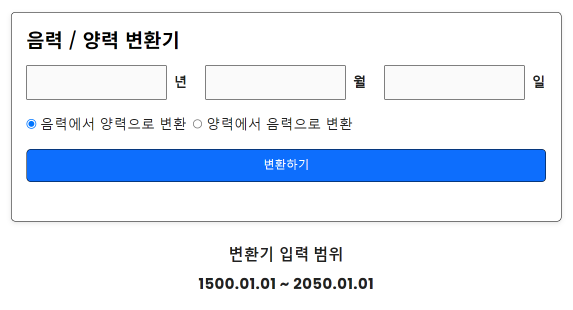 - 변환기 웹사이트에 접속하여 날짜를 입력하고 변환 버튼을 클릭하면 됩니다.